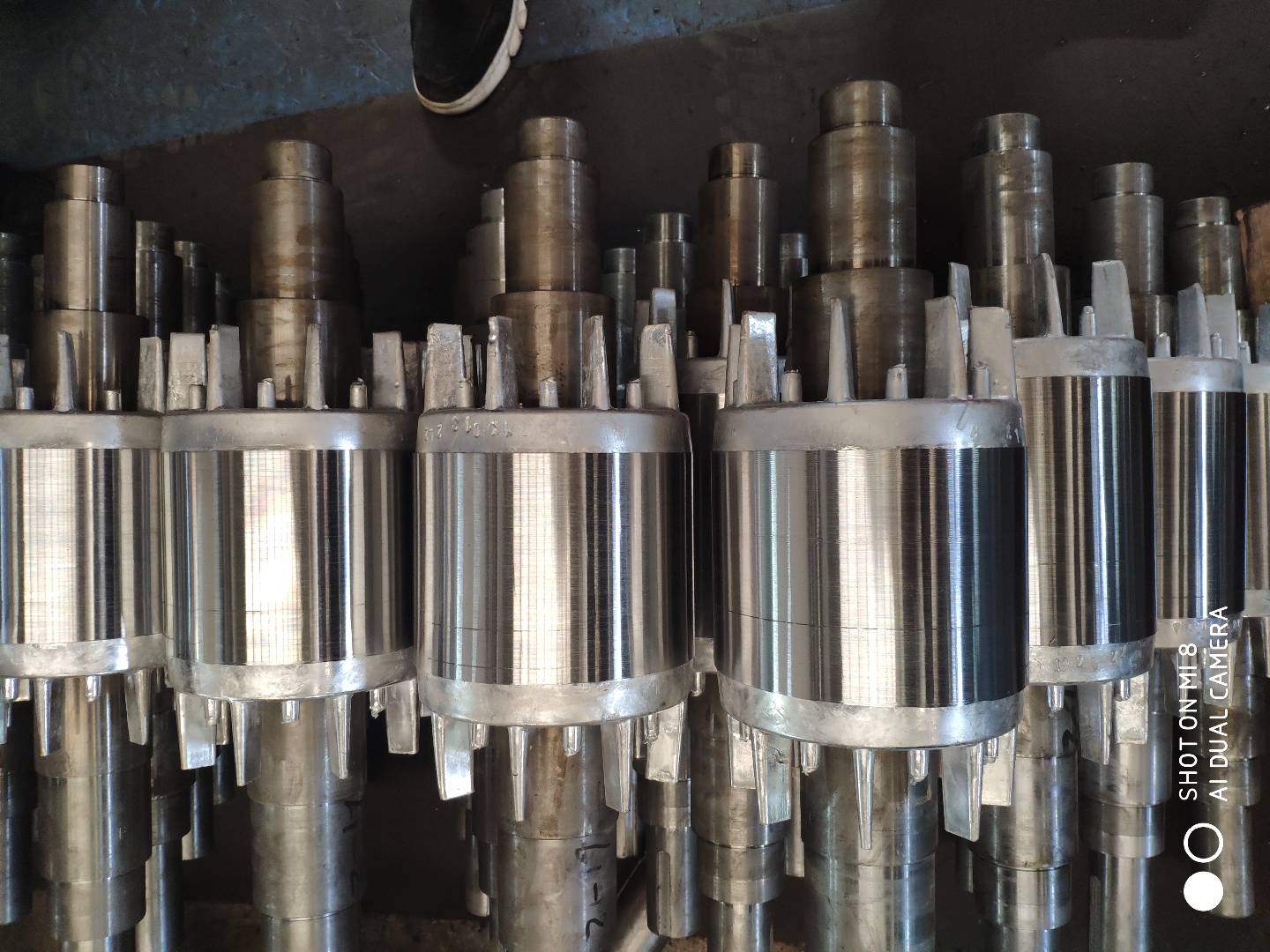 鑄鋁轉(zhuǎn)子的外觀檢查包括鐵芯和鑄造保持架。鐵芯的長度、重量、滑槽角度、直線度應(yīng)符合圖紙要求;對于徑向通風(fēng)槽的鐵芯,鐵芯內(nèi)沒有明顯的波浪,也沒有鋁漏堵塞通風(fēng)槽。鋁籠沖片與軸孔之間不得夾鋁或粘鋁;環(huán)的末端及其風(fēng)機(jī)葉片和平衡柱應(yīng)無裂紋和夾渣;風(fēng)機(jī)葉片端部縮孔、冷隔斷、平衡柱不完整不得超過規(guī)范;端部尺寸和徑向跳動(dòng)符合圖紙要求。表面外的內(nèi)在質(zhì)量主要由具體的工藝控制決定。
