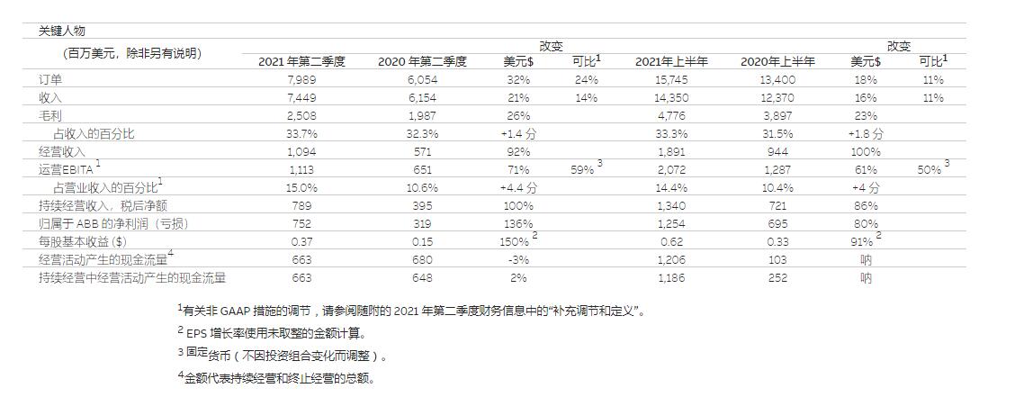ABB 2021 年第二季度結(jié)果-2021年Q2季度