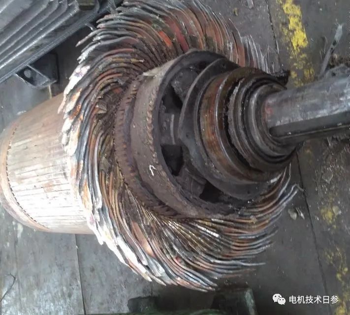 在電機(jī)運(yùn)行過(guò)程中,由于發(fā)熱問(wèn)題,轉(zhuǎn)子線棒的性能也會(huì)發(fā)生一定程度的變化,特別是對(duì)于溫升較高的電機(jī),由于發(fā)熱問(wèn)題,轉(zhuǎn)子繞組的絕緣會(huì)軟化,剛度下降,端部會(huì)因離心力而嚴(yán)重變形甩出。當(dāng)拋出的變形程度達(dá)到與定子繞組摩擦的程度時(shí),就會(huì)發(fā)生短路爆炸,電機(jī)完全燒毀。